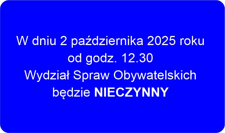 W dniu 2 października 2025 roku od godz. 12.30 Wydział Spraw Obywatelskich NIECZYNNY