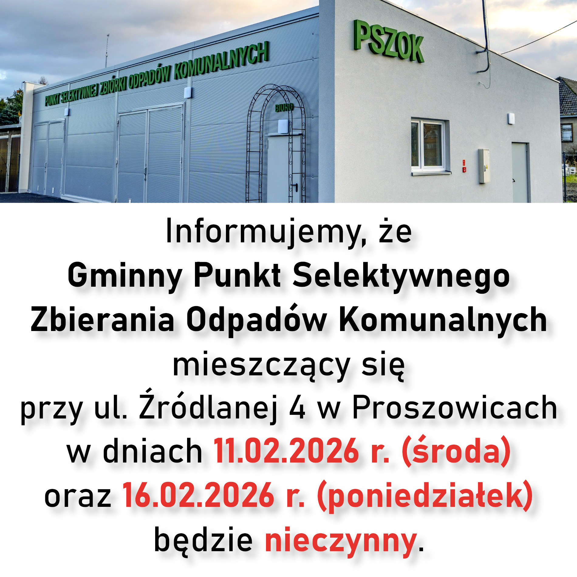 Informujemy, że Gminny Punkt Selektywnego Zbierania Odpadów Komunalnych
